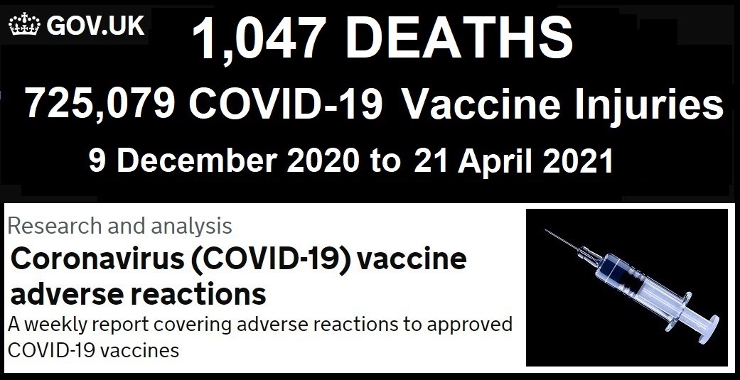 The UK Government’s reporting system for COVID vaccine adverse reactions from the Medicines and Healthcare products Regulatory Agency released their latest report today, April 29, 2021.