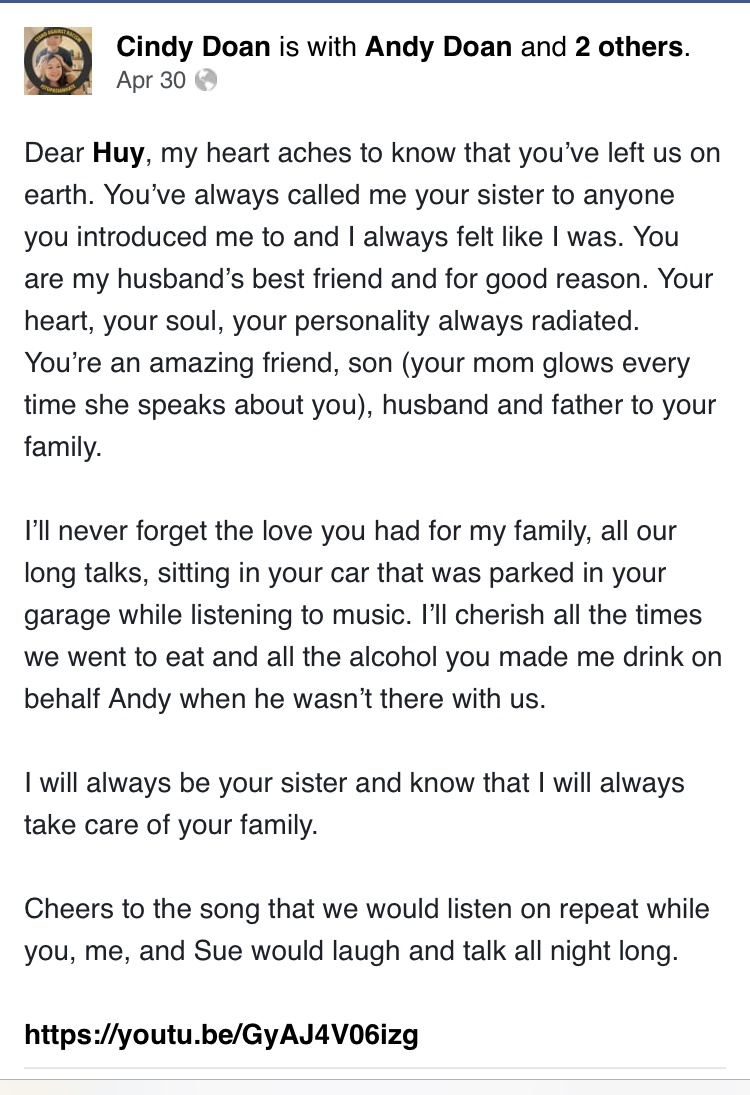 Anthony received his covid vaccine on April 20th according to his brother-in-law Phuong Tran. He passed away 10 days later at the age of 45. Family suspects the vaccine caused his death.
