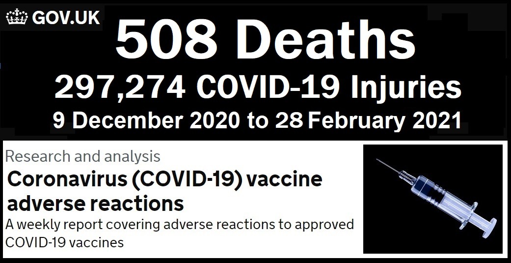 The UK Government’s reporting system for COVID vaccine adverse reactions from the Medicines and Healthcare products Regulatory Agency released their latest report today, March 11, 2021.