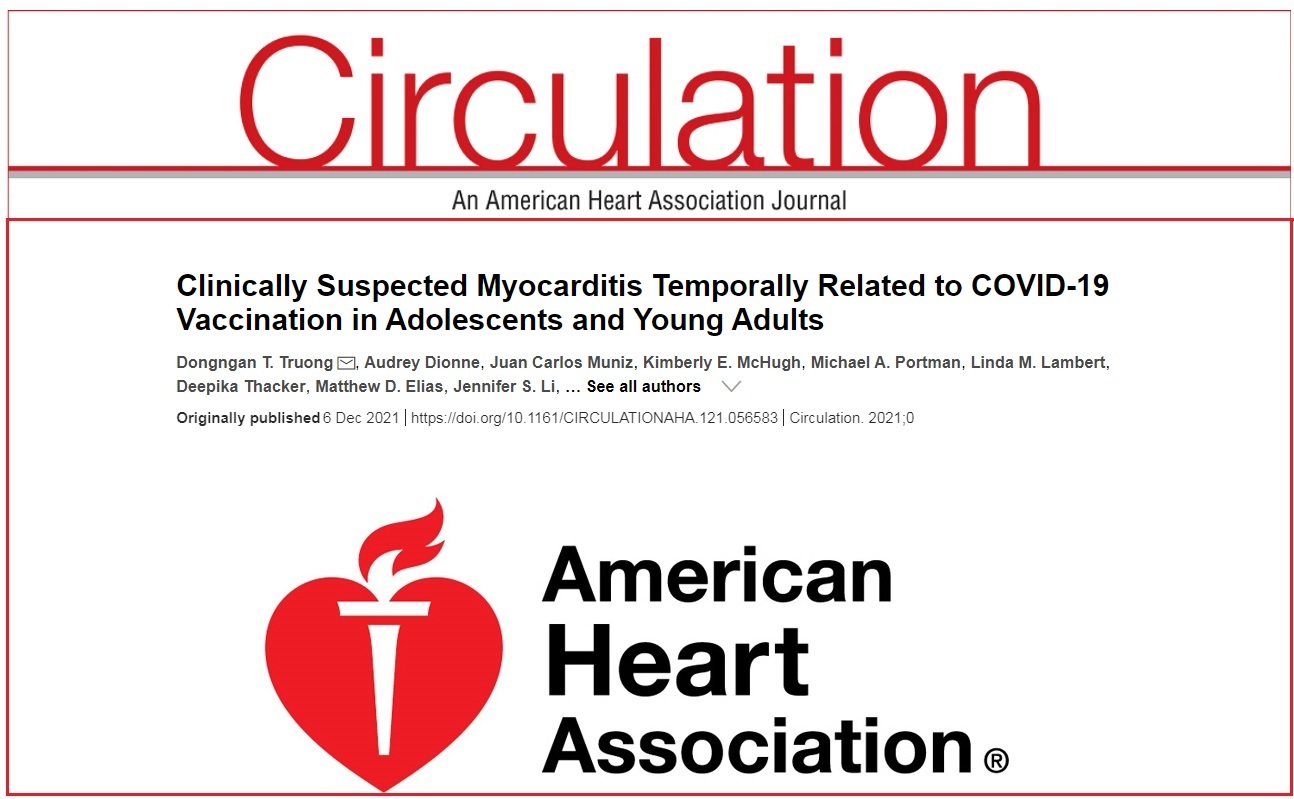 The American Heart Association’s journal Circulation has published another abstract of a study with very alarming data on the effects of the COVID-19 experimental shots on heart disease in young people.
