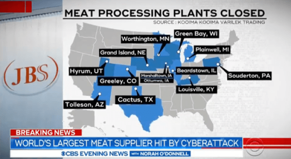 By sheer cowinkydink, another ransomware attack has taken down operations of another major American industry. This time, the target is America’s largest meat processer, JBS.