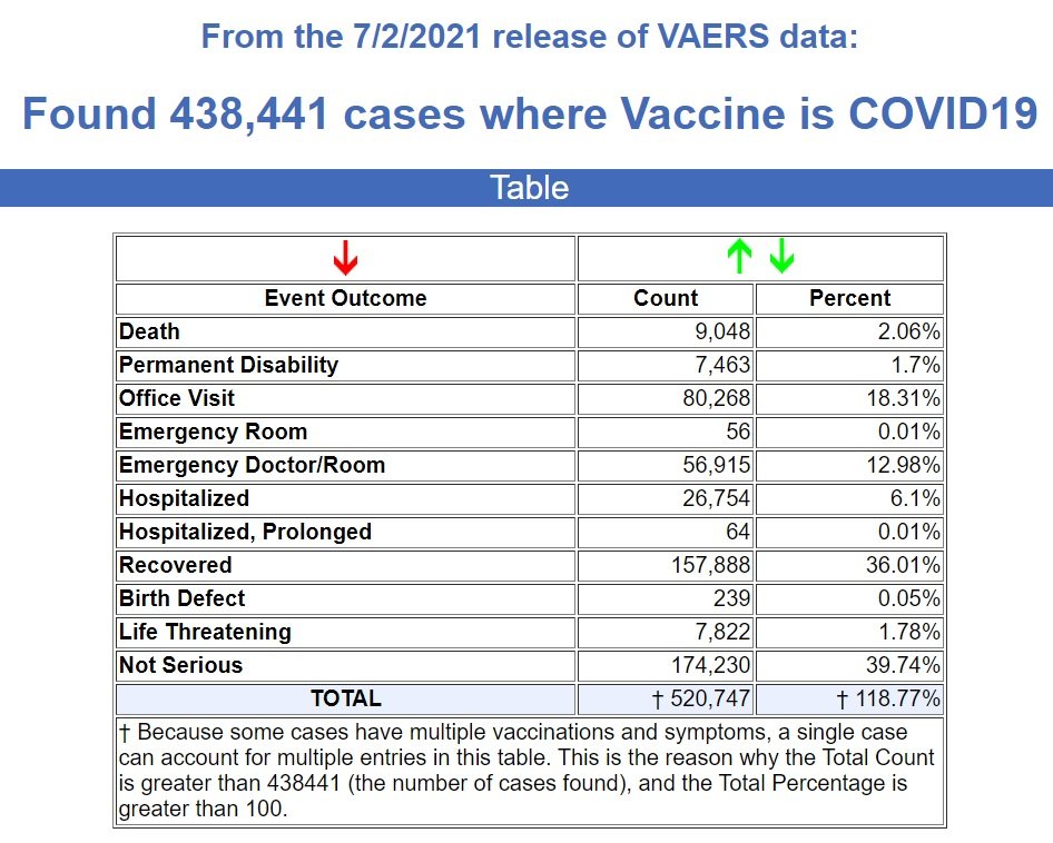 Besides the 9,048 deaths, there are 7,463 permanent disabilities, 56,971 Emergency Room visits, 26,818 Hospitalizations, and 7,822 Life Threatening injuries following the COVID-19 injections.