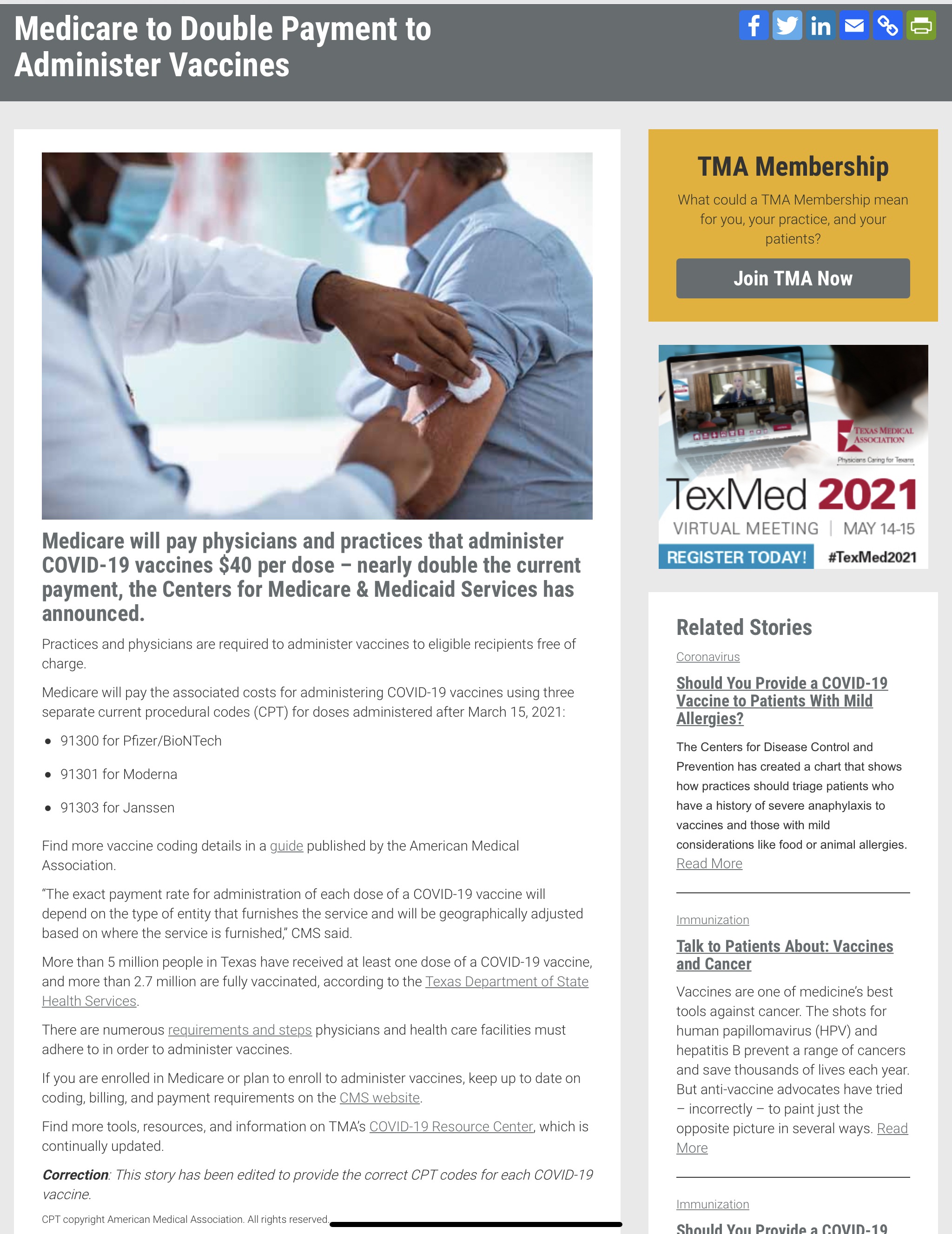 A Texas medical doctor has alerted Health Impact News that the federal government, through its Medicare/Medicaid program, is now offering Texas doctors DOUBLE the normal reimbursement per vaccine for every experimental COVID shot they give to their patients.