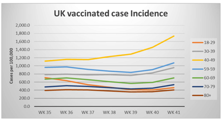 The Agency says most vaccinated suffer substantially higher rates of infection, and their latest chart provides a snap-shot: