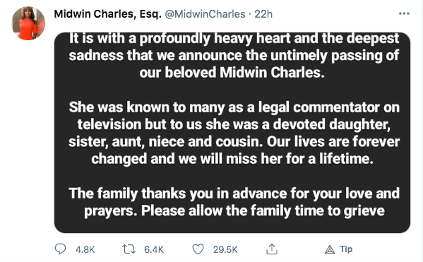 Brooklyn defense attorney and television commentator Midwin Charles is dead after what appears to be several days of suffering after receiving at least one experimental COVID shot.