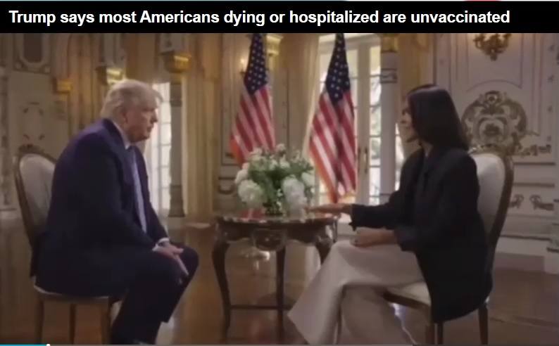 When Candace Owens tried to get the former president to admit the vaccines were not working as planned, pointing out that more people had died this year from COVID-19 under Biden than they did under his presidency when there was no vaccine yet, Trump doubled down and parroted the same lie that Joe Biden, Fauci, the CDC, and the FDA keep saying, and blamed the deaths and hospitalizations on the unvaccinated.