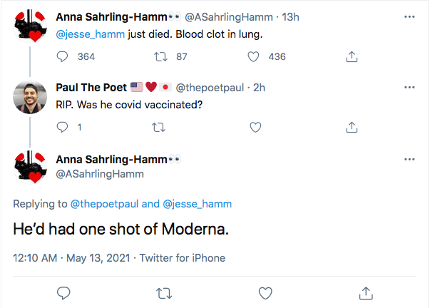 It is unclear when exactly he received the first dose of experimental mRNA. But he was always very active on Twitter up until Tuesday, May 11. Thus it appears he died very suddenly yesterday. We know that his birthday was on July 30 and he was in his mid-40s.