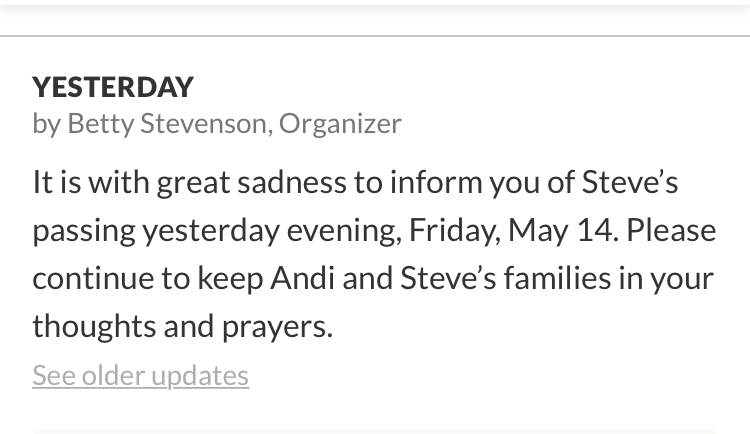 On May 14, 2021 Ken Koek, Steve’s brother, posted the following on Facebook: