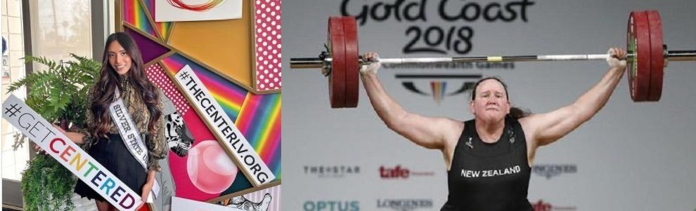 Left – Transgender Kataluna Enriquez wins “Miss Nevada” and becomes the first biologically born male to compete in the Miss USA pageant (source), Right – Transgender Laurel Hubbard becomes the first biologically born male to compete in the Olympics in Japan in a female sport competition. (source)