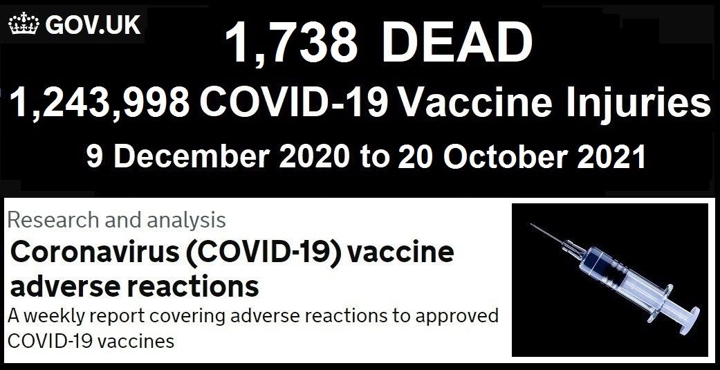 The UK Government’s reporting system for COVID vaccine adverse reactions from the Medicines and Healthcare products Regulatory Agency released their latest report yesterday, October 28, 2021.
