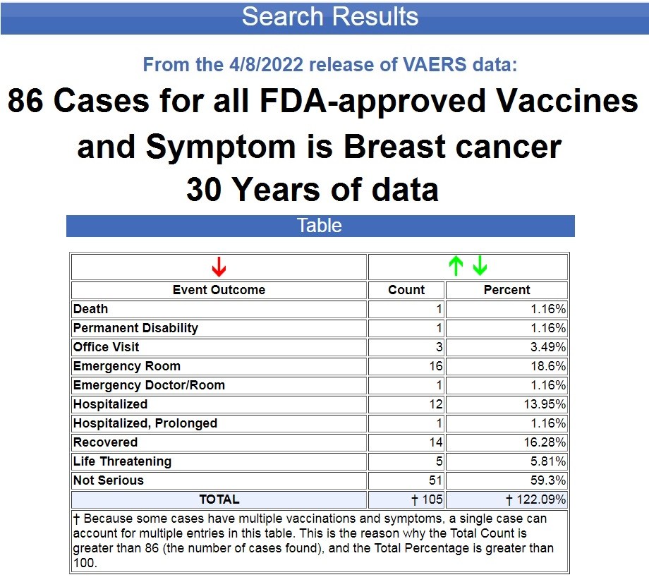 Breast cancer was the most prevalent cancer reported following COVID-19 vaccinations, with a 8,900% increase over cases of breast cancer reported following all FDA-approved vaccines for the previous 30 years. (COVID-19 vaccine breast cancer report here. Previous 30 years vaccine breast cancer report here.)