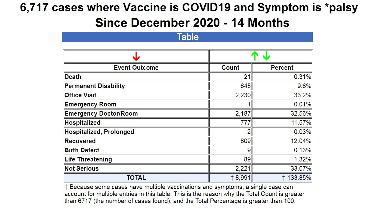 So I searched VAERS for all cases of any kind of “palsy” following COVID-19 vaccines, and it returned a result of 6,717 cases.
