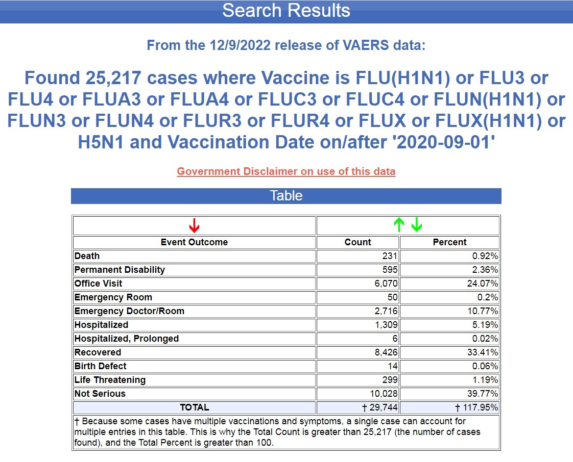 Next, we can do a search in VAERS to see how many deaths and side effects were recorded from these vaccines during that same time period. The results are here.