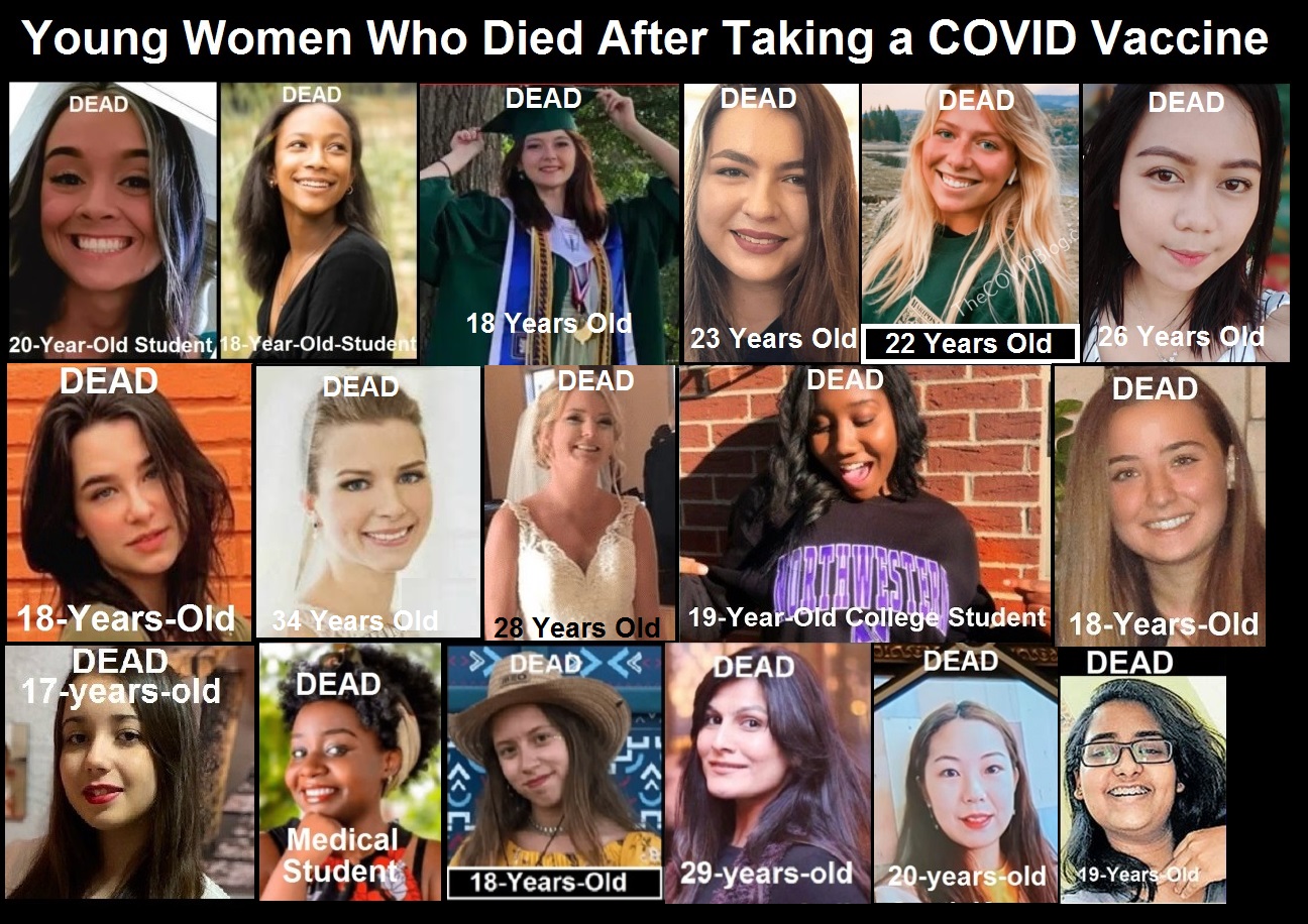 A few examples of young, child-bearing age women who have died after taking a COVID-19 vaccine that we have covered for the past two years.