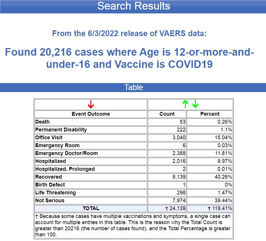 So I am going to publish Government data on cases of adverse reactions that have been filed with the Vaccine Adverse Events Reporting System (VAERS) for these age groups subsequent to the authorization for these vaccines for these age groups, something that neither the government nor the pharma-funded corporate media will publish, and yet can be verified by anyone with Internet access since this is public knowledge.