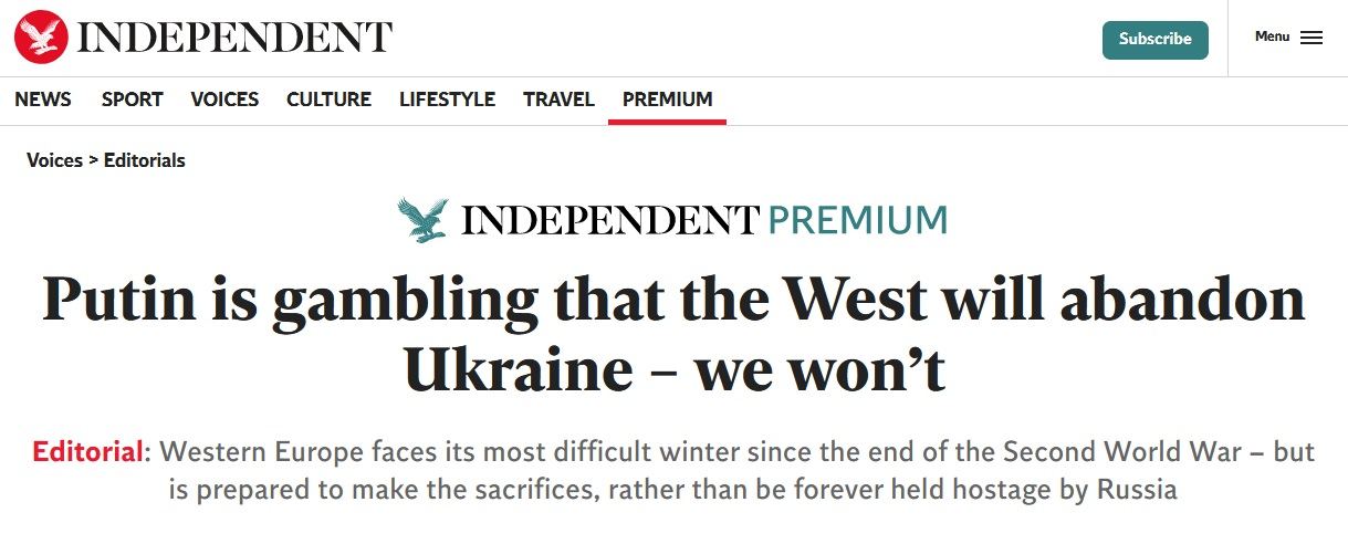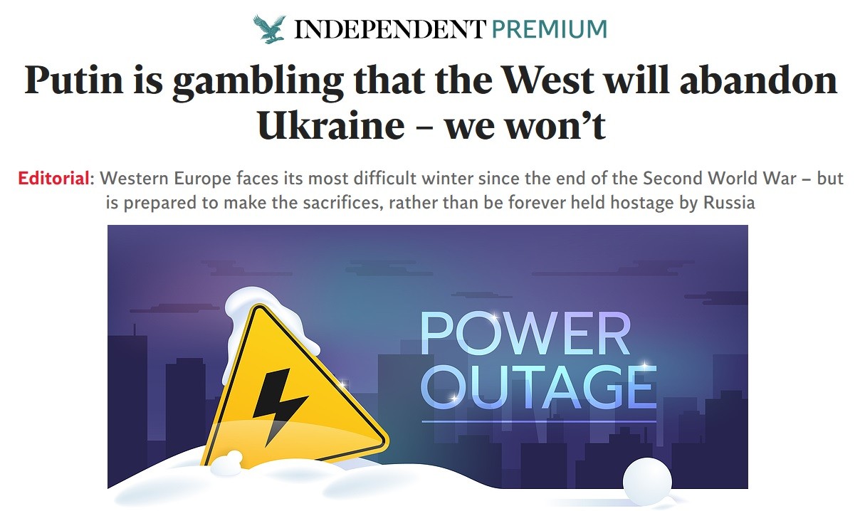 If you live in “Western Europe,” does this editorial represent your sentiment on this war? Are you prepared to “make the sacrifices” this winter to not be “held hostage by Russia?”