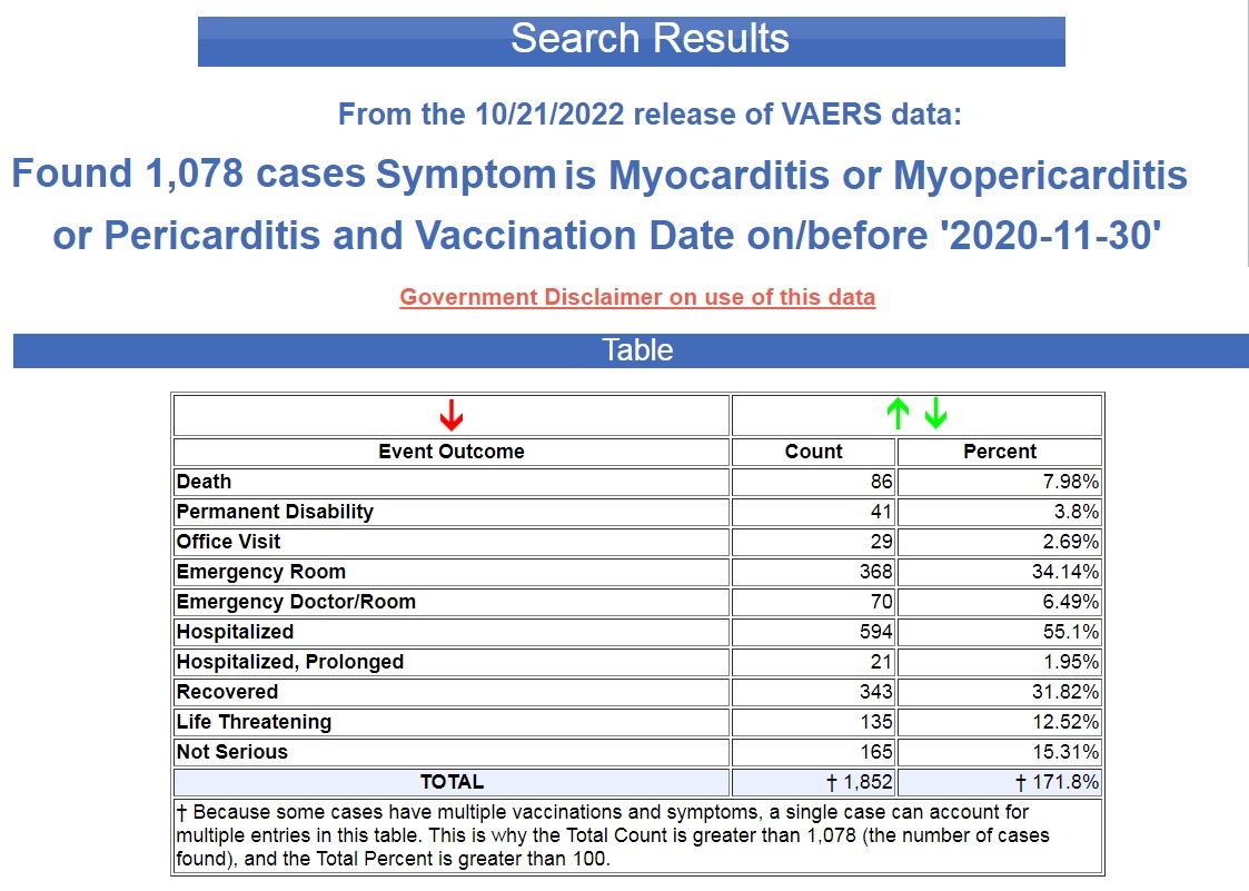 I took the three forms of heart disease that JAHA referenced, which are myocarditis, pericarditis, and myopericarditis, and searched for these three forms in VAERS following COVID-19 vaccines. The search found almost 25,000 cases, with 381 deaths, 1,145 permanent disabilities, over 5000 ER visits, and nearly 13,000 hospitalizations. (Source.)