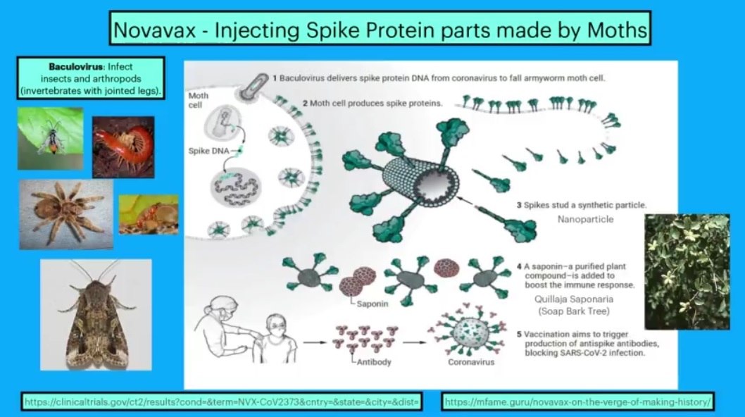 Fleming claims that Novavax is also a bioweapon, injecting a spike protein that has been cultured by moths. Dr. Fleming wants everyone who is involved in distributing these bioweapons prosecuted and brought to justice.