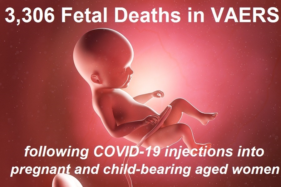 The update to VAERS released today also shows that there have been 3,306 fetal deaths reported following COVID-19 vaccines since they were given emergency use authorization in December, 2020. (Source.)
