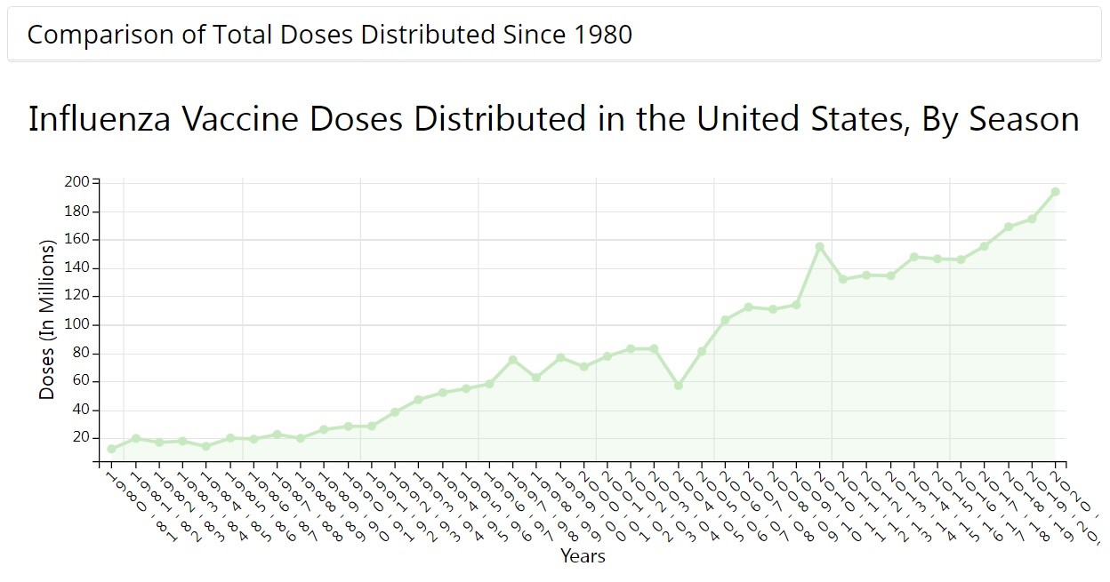 But everything is OK if you are invested in pharmaceutical stocks, because with the Federal Reserve banks creating money out of thin air and then having their puppet politicians give $TRILLIONS to the pharmaceutical industry, there was plenty of money to go around for other vaccines besides COVID, and annual sales of the flu vaccine skyrocketed to its highest total ever in the 2020-21 flu season, at 193.8 MILLION doses, the same year the COVID-19 vaccines were introduced.