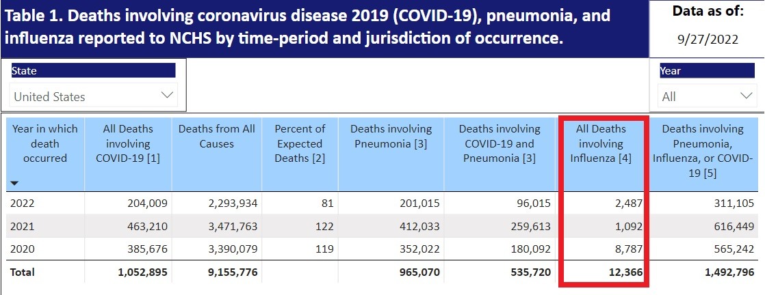 When the world was told that a deadly new virus had arrived in 2020, the flu basically disappeared, as there just were not enough people dying to inflate both influenza and COVID death statistics.