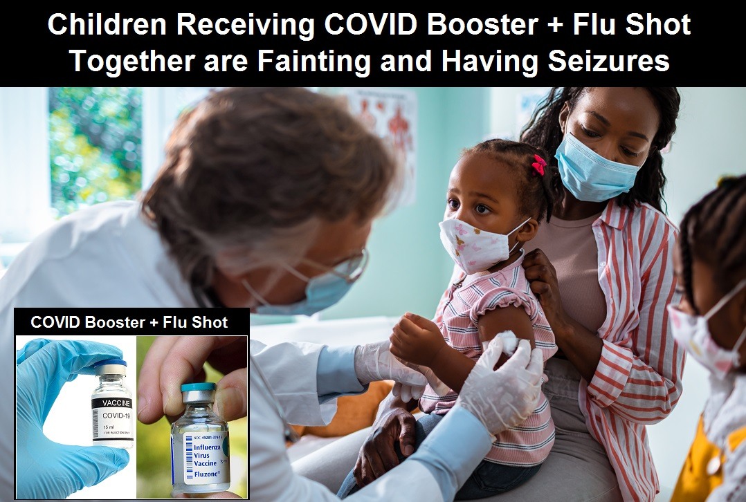 The most common side effects these children who have received BOTH a flu shot and a COVID shot together at the same time are experiencing are dizziness and fainting within minutes of receiving both shots.