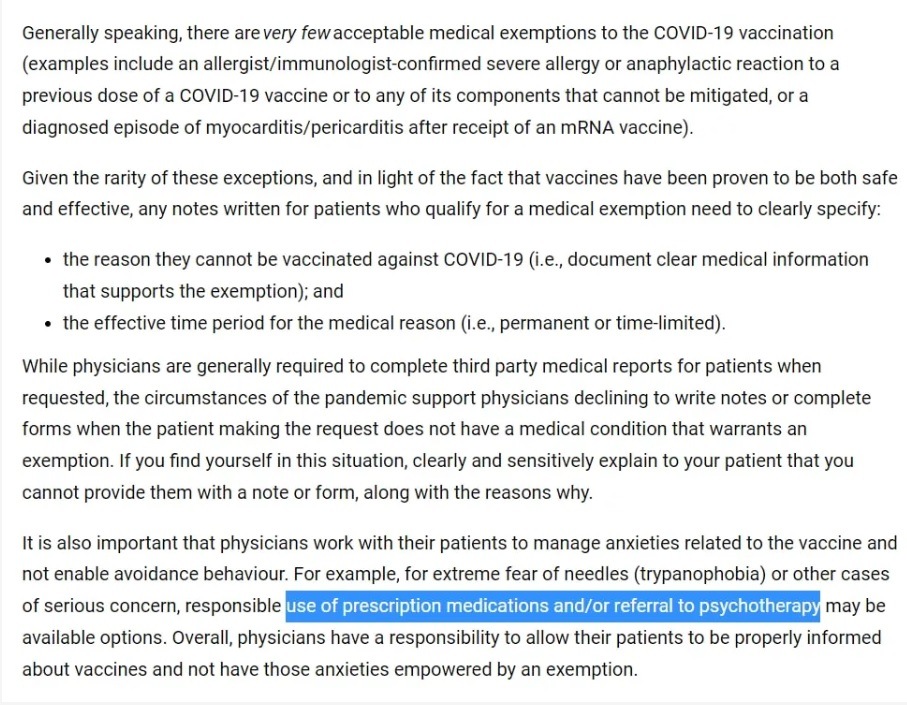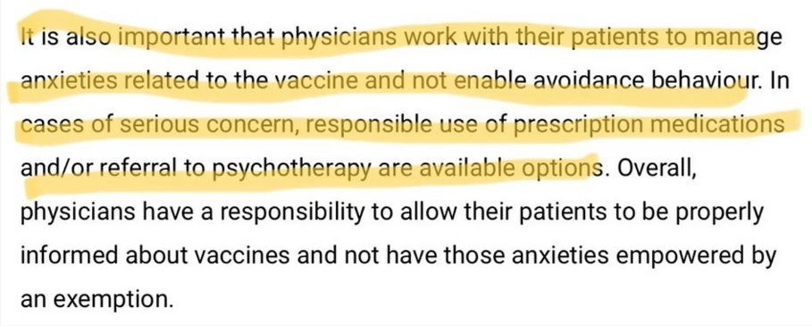 In fact, they are such strong advocates of it — that they are advising physicians to use psychotropic means on those with vaccine “anxiety.” Here’s a memo they sent out to Ontario physicians: