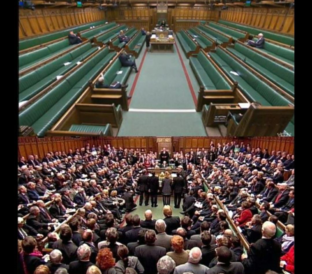 Dr. Mike Yeadon shared a photo on his Telegram channel showing how only a few other MPs showed up to hear Andrew Bridgen’s speech on COVID-19 vaccine corruption and harm, compared to another photo at the same location when MPs were voting on their own pay increases.