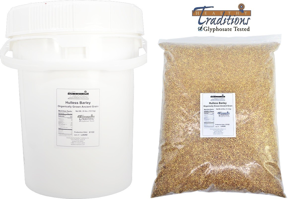 In the past, we have tried to provide barley that has been grown in North America, but due to the vast contamination of certified organic grains in the US and Canada, by the known carcinogen, glyphosate, we had to open our search to other areas of the world. Our Hulless Barley is grown on an organic farm in Italy and a sample from our batch tested to be free of glyphosate.