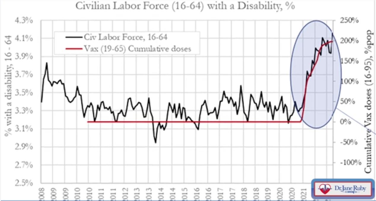 Even as the COVID shots drastically decreased in 2022, excess deaths and disabilities among the young and healthy in the U.S. workforce continued to rise throughout 2022.