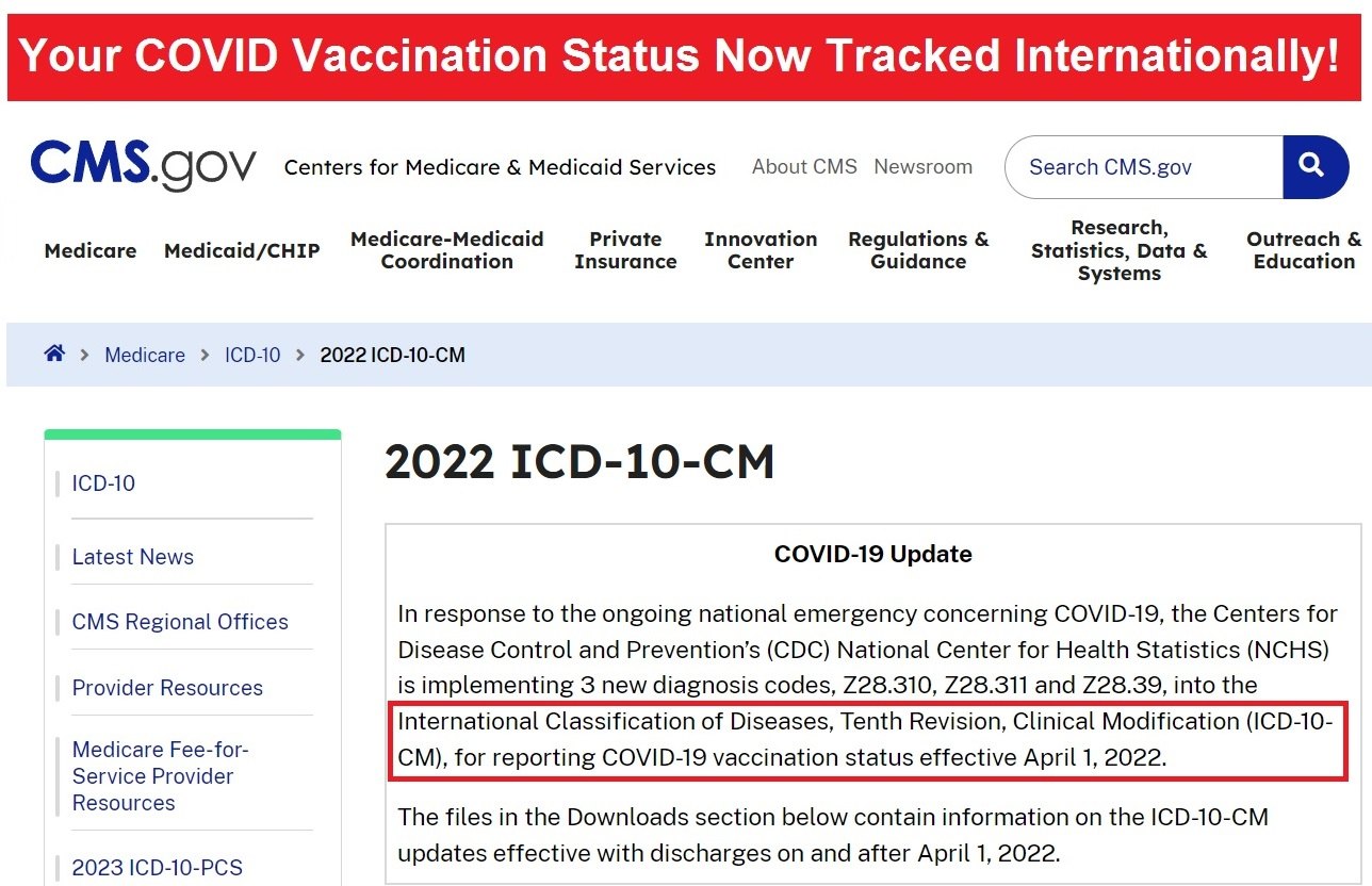 Leo Hohmann has just published a special report about how the International Classification of Disease (ICD) codes used by the medical industry for billing purposes under Medicare-Medicaid and the private insurance companies, now include a code for COVID-19 “vaccination status.”