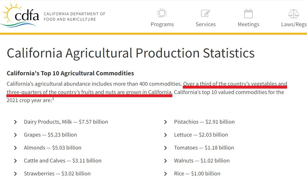 Almost half of America’s agriculture is produced in the State of California, producing over 50 $BILLION annually in revenues.