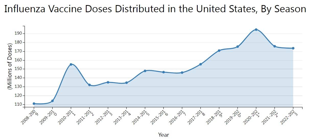 But while the seasonal flu disappeared in 2020, the seasonal flu shot did not. In fact, more doses of the influenza vaccine were distributed in 2020 than any other year on record.