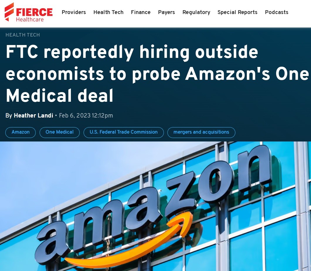 The entire medical industry is being digitized and handed over to Big Tech now, as online shopping giant Amazon.com is getting into the “healthcare” field in a big way also, by purchasing One Medical for $3.9 billion, something the FTC is looking at right now.