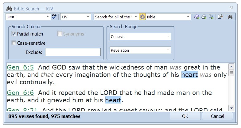 If one does a search for the word “heart,” however, it will return a result of almost 1000 matches where words in the original languages were translated into English as “heart.”