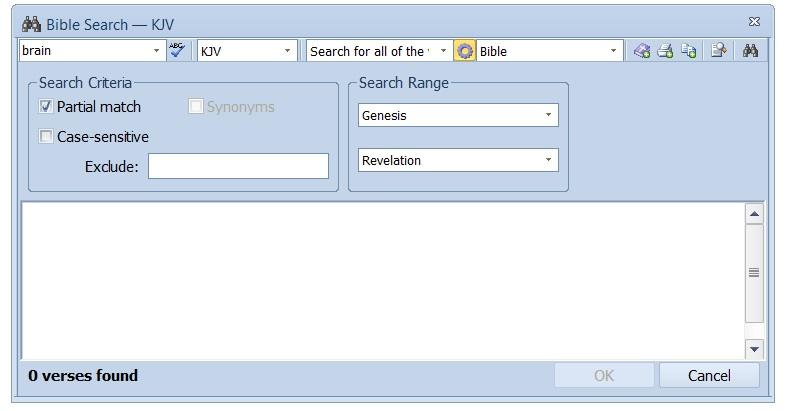 I searched every English translation I have for the word “brain,” and all of them turned up a negative result with ZERO instances of the English word “brain” used to translate any of the words in the original languages.
