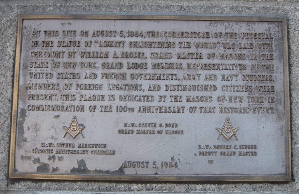 Photo of the plaque on the cornerstone of the Statue of Liberty in New York.