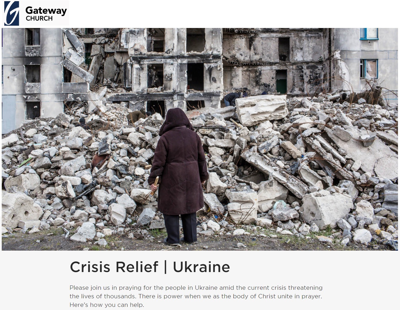 Gateway Church, another “mega-church” in Texas also jumped in and started collecting funding to send to Ukraine.