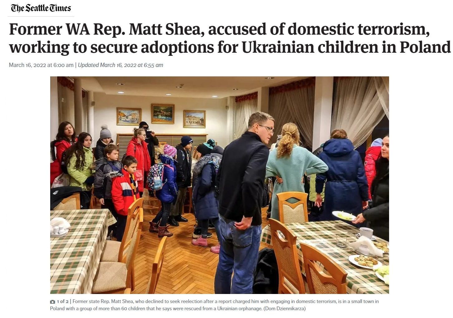 Former Washington state Rep. Matt Shea, the Republican who was found by a House-commissioned investigation to have planned and participated in domestic terrorism, is in a small town in Poland with more than 60 Ukrainian children, trying to facilitate their adoption in America.