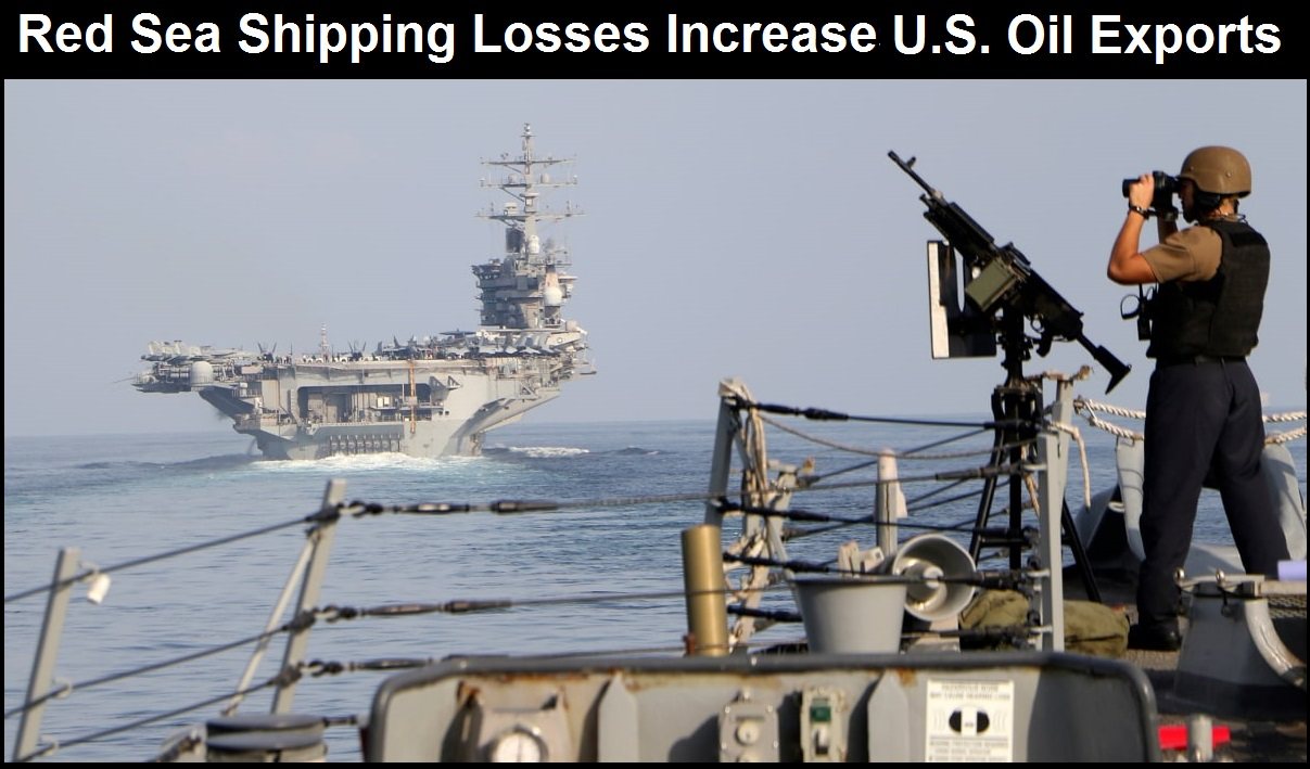 It appears that I was correct, as it was reported today in the financial news that U.S. petroleum exports have climbed by 1.377 million barrels A DAY since the Houthi attacks in the Red Sea.
