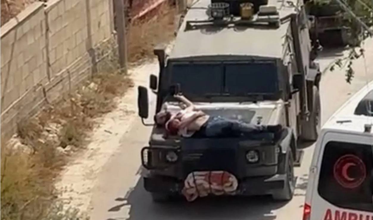 This weekend Israeli forces in the occupied West Bank tied a wounded Palestinian man to the hood of a military vehicle during a raid on the city of Jenin, using him as a human shield.